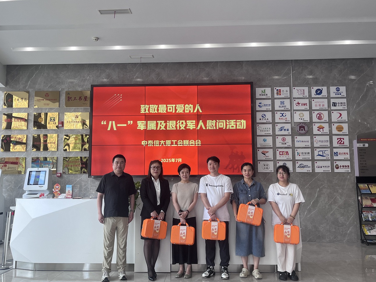 在“八一”建軍節(jié)來(lái)臨之際,為弘揚(yáng)擁軍優(yōu)屬優(yōu)良傳統(tǒng),7月31日,青島中泰信大廈工會(huì)聯(lián)合會(huì)組織開展軍屬及退役軍人慰問活動(dòng),向相關(guān)產(chǎn)業(yè)園區(qū)軍屬及退役軍人代表送上節(jié)日祝福和精美大禮包,傳遞關(guān)懷與溫暖。